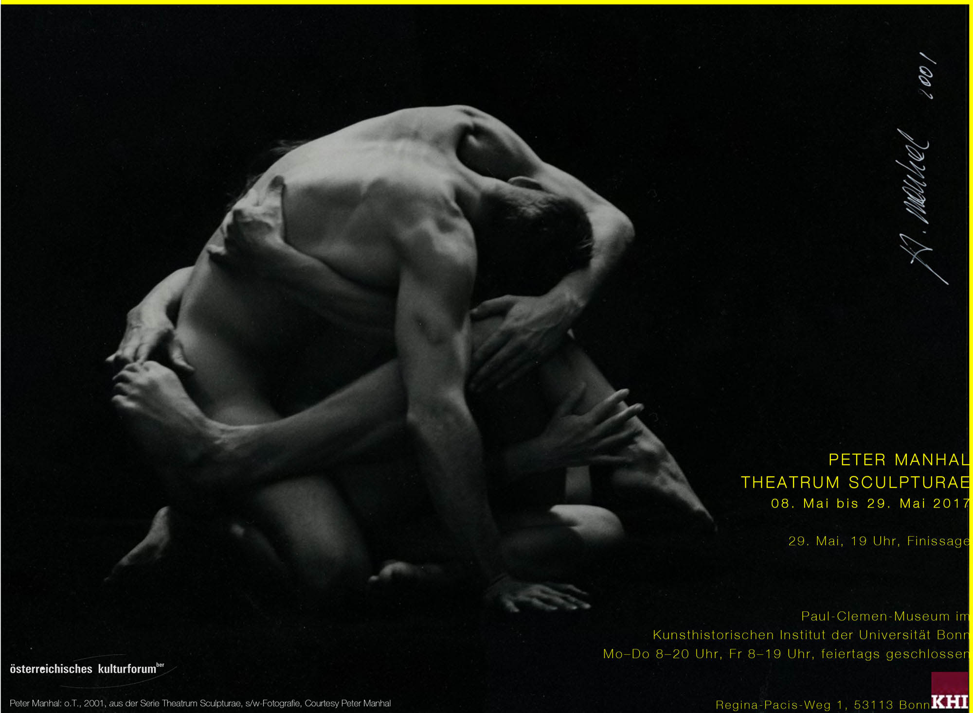 Peter Manhal war auf Einladung von Prof. Dr. Anne-Marie Bonnet von 8. bis 29. Mai 2017 mit THEATRUM SCULPTURAE im Paul-Clemen-Museum im Kunsthistorischen Institut der Universität Bonn zu Gast. Ein Nachwort von Prof. Dr. Anne-Marie Bonnet: Peter Manhal Theatrum Sculpturae II Kunst und Körper Peter Manhals Photoinszenierung ‚Theatrum Sculpturae II’ zeichnet sich