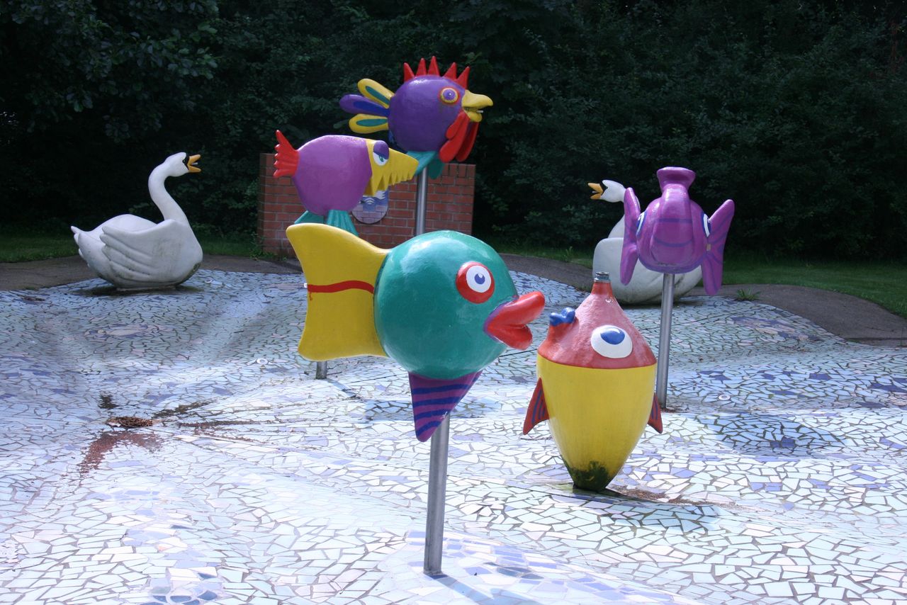 MUMUTH Graz, Gestaltung des Liftschachtes und Übergang (2009) Brunnengestaltung Schuberthof, Graz